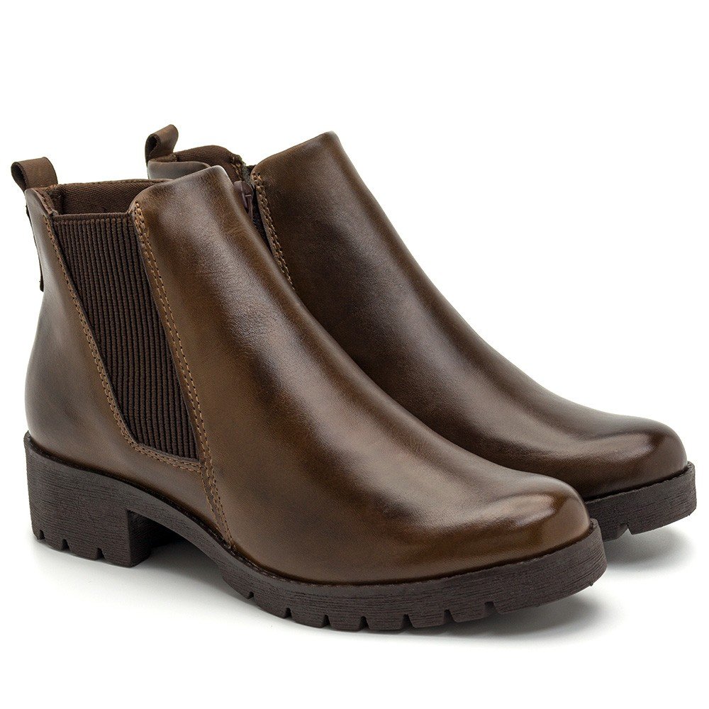 Bota Chelsea Cano Curto em Couro First Concept com Elasticos e Salto Tatorado