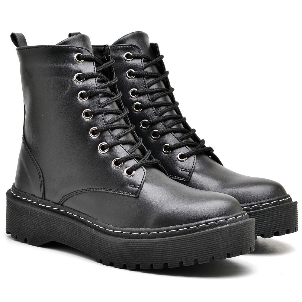 Bota Coturno Feminina Salto Tratorado Cano Médio Confortável