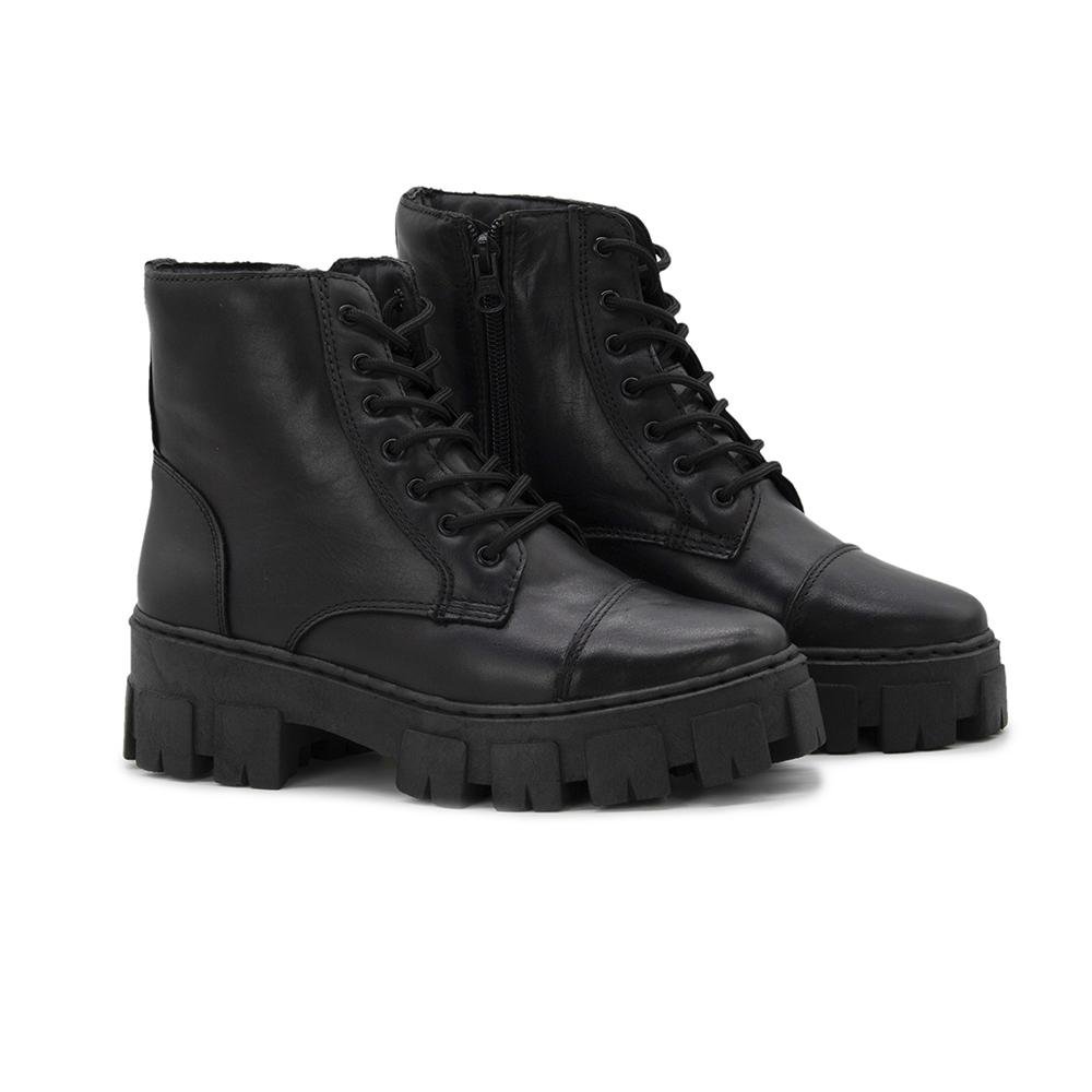 Bota Coturno Feminino Couro Tratorada Conforto Preto