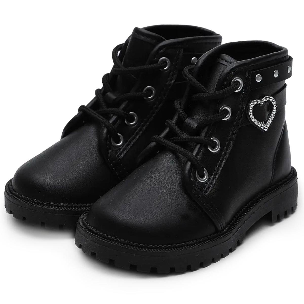 Bota Coturno Infantil Molekinha Coração Menina - Preto Preto