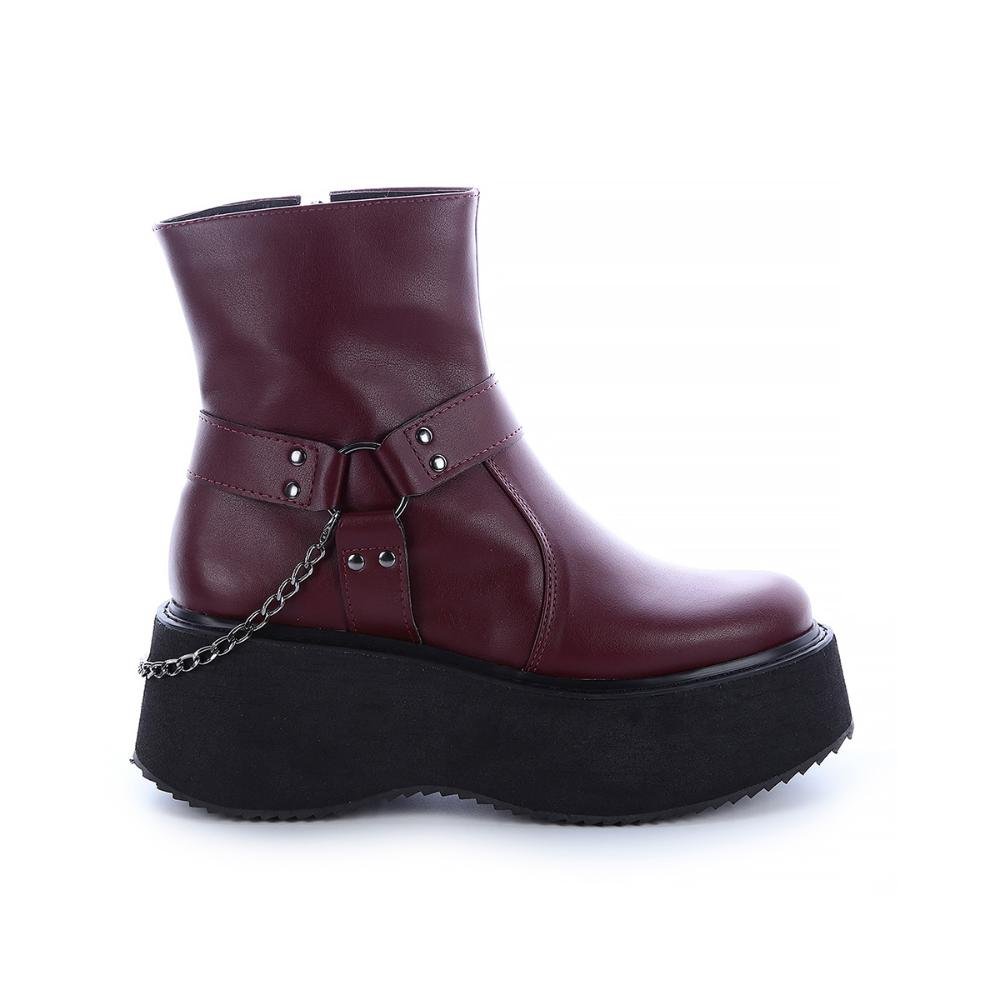 Bota Coturno Plataforma Lívia Bordô Vermelho