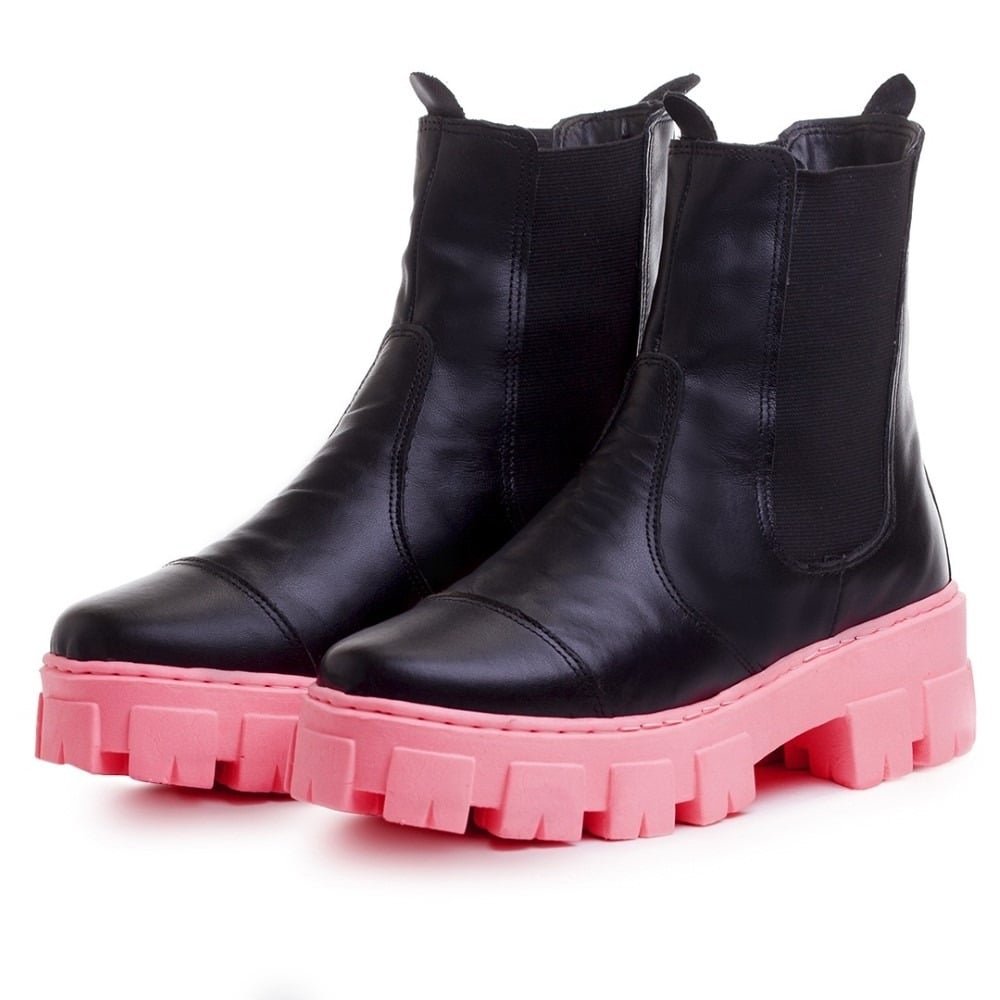• Bota Coturno Tratorada Plataforma de Couro Feminina Sola Colorida Moderna Preto 1