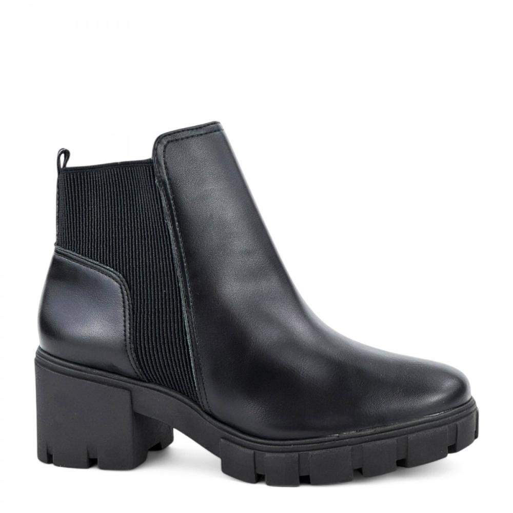 Bota Curta Tratorada Elástico Casual Via Marte Feminina Preto
