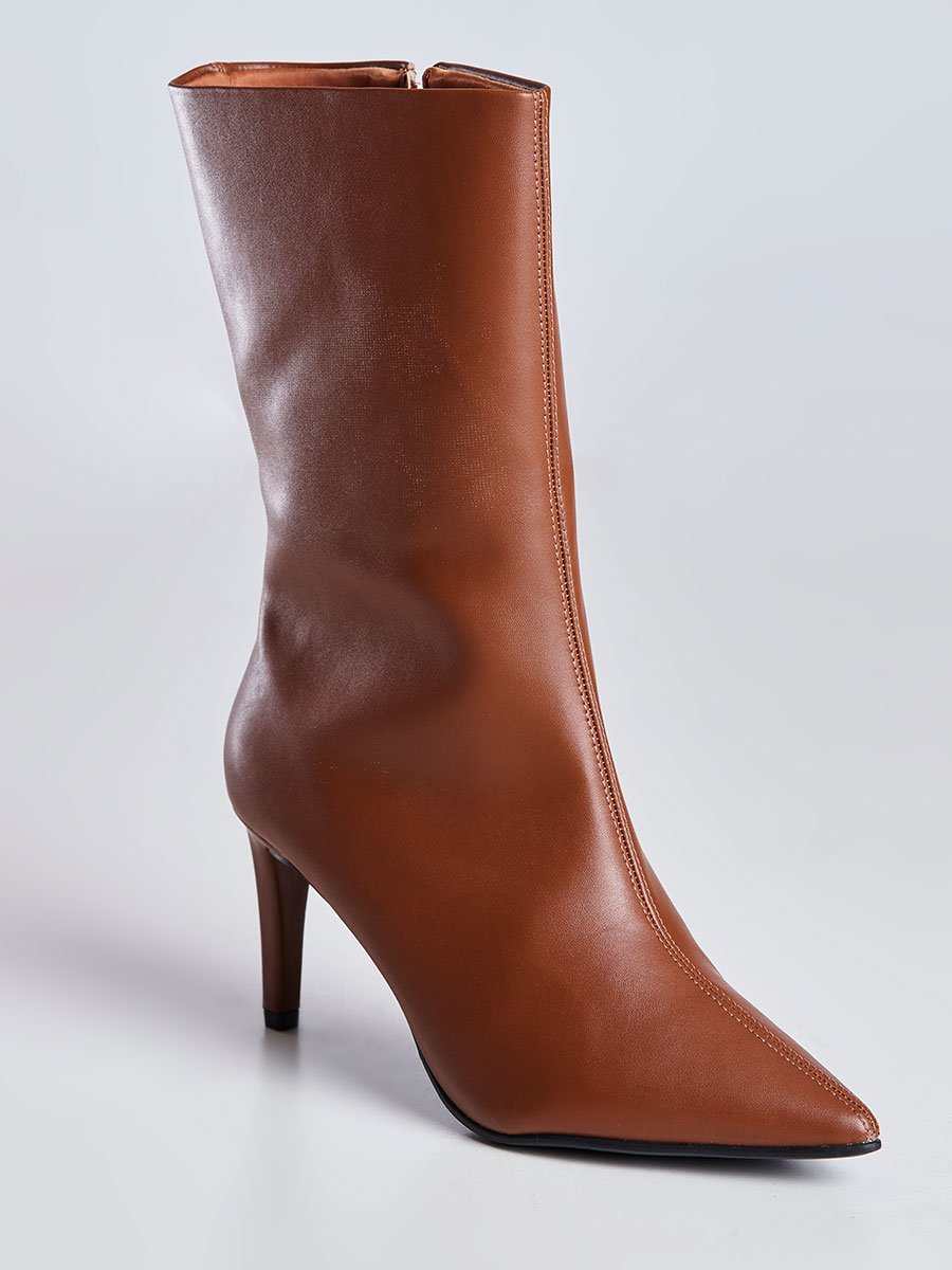 Produto: Bota de Couro Cano Medio Bico Fino Marrom