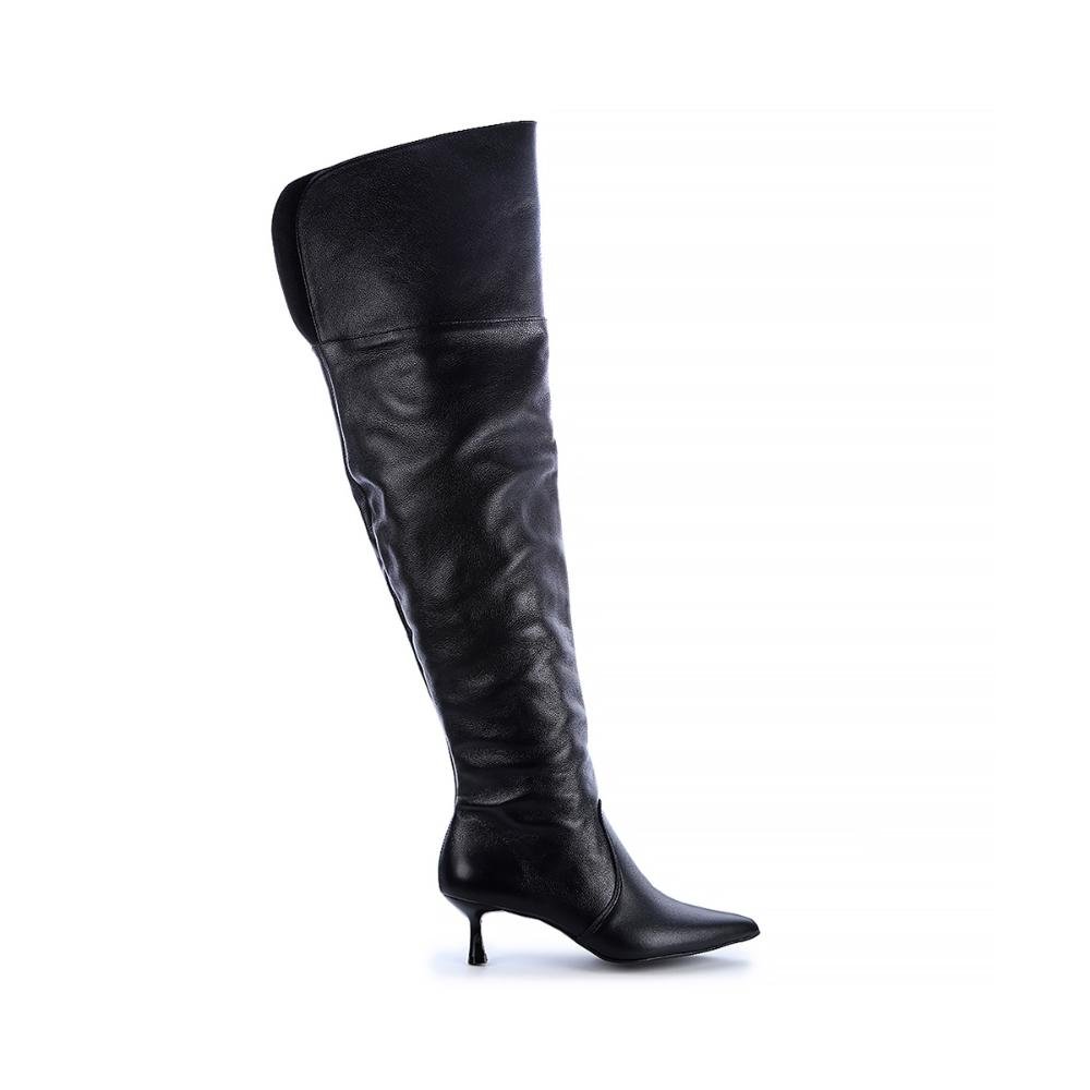 Bota de Couro Legítimo Over The Knee Kayla Preto Preto