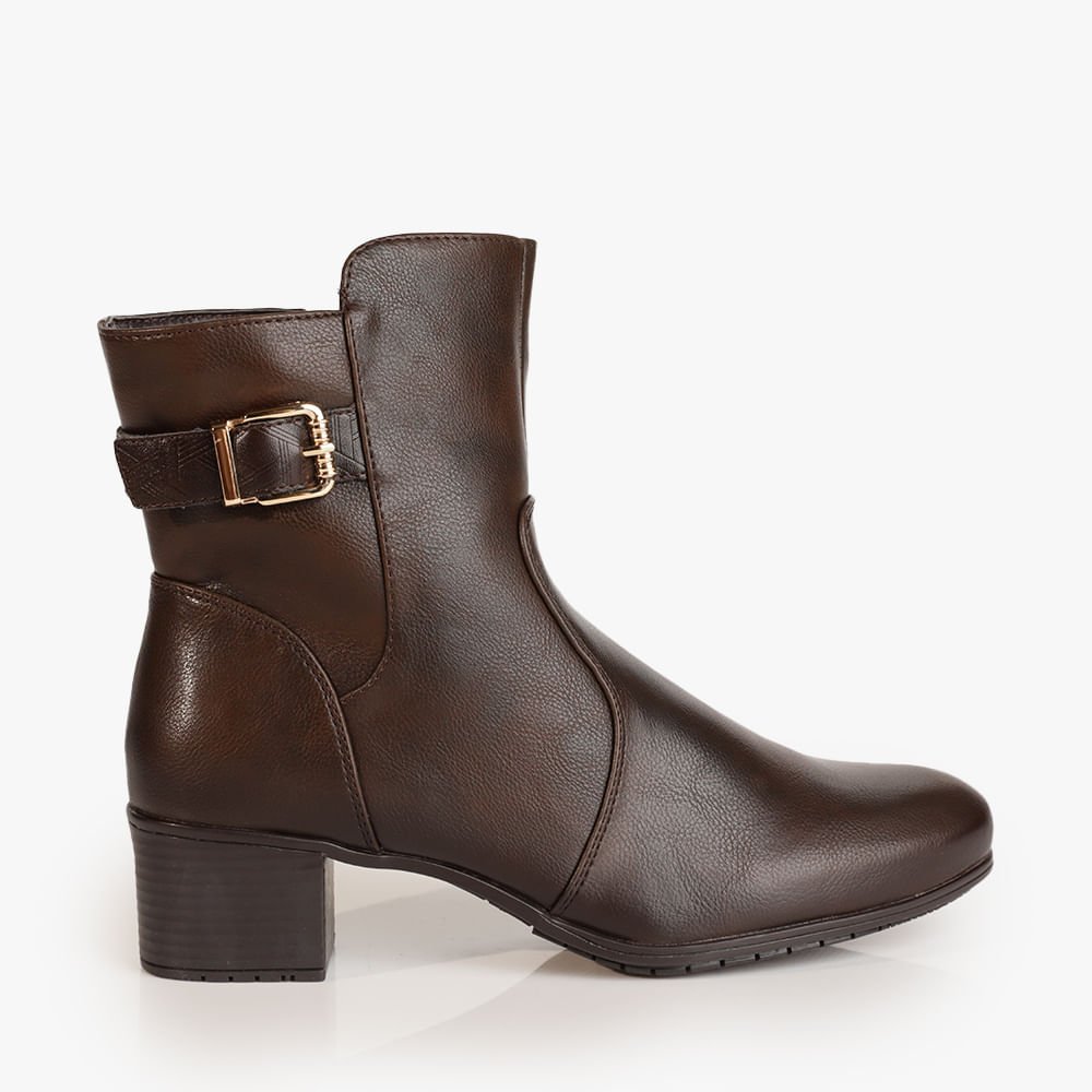 Bota Detalhe Fivela Salto Grosso Feminina Marrom