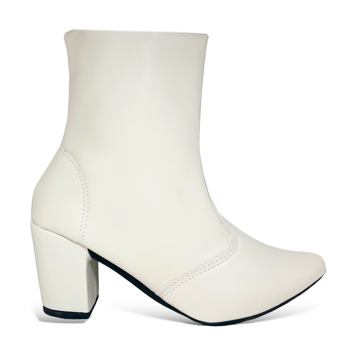 Bota Feminina Branca Off White Cano Curto Bico Fino Salto Bloco Grosso Branco