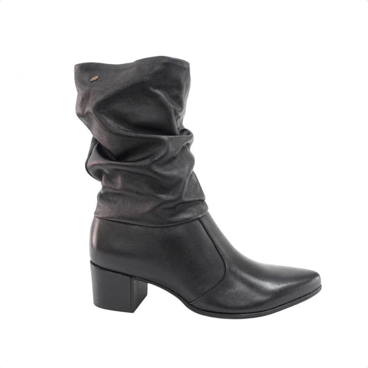 Título: Bota Feminina Cano Médio Em Couro Pegada Preta