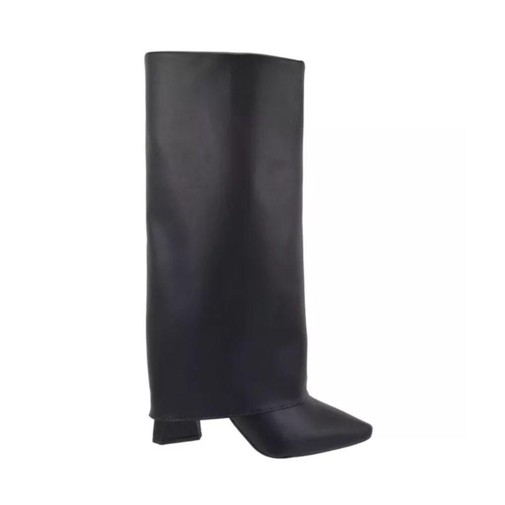 Bota Feminina Capa Salto Alto Grosso Geométrico Bico Fino