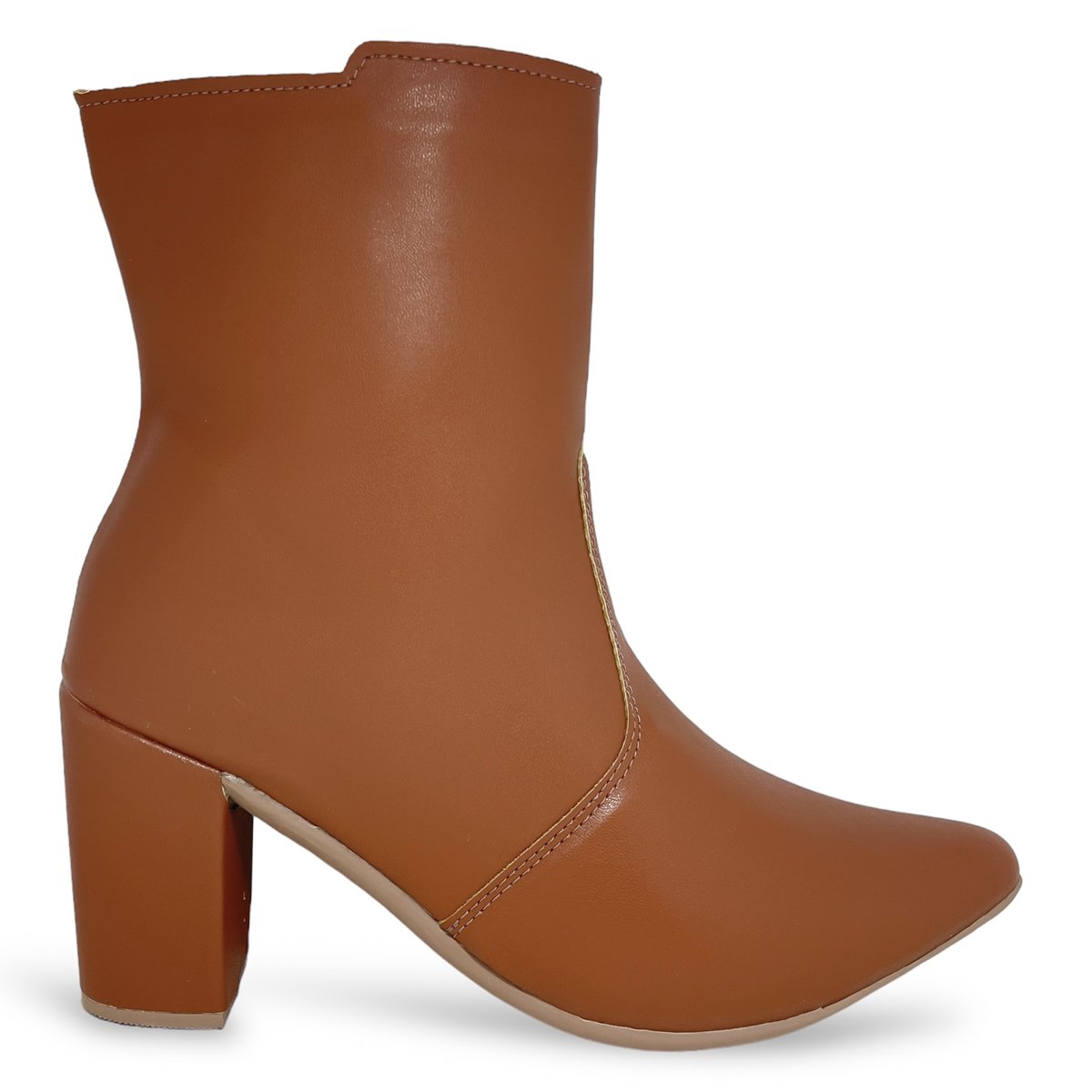 Bota Feminina Caramelo Cano Curto Bico Fino Salto Bloco Grosso Marrom