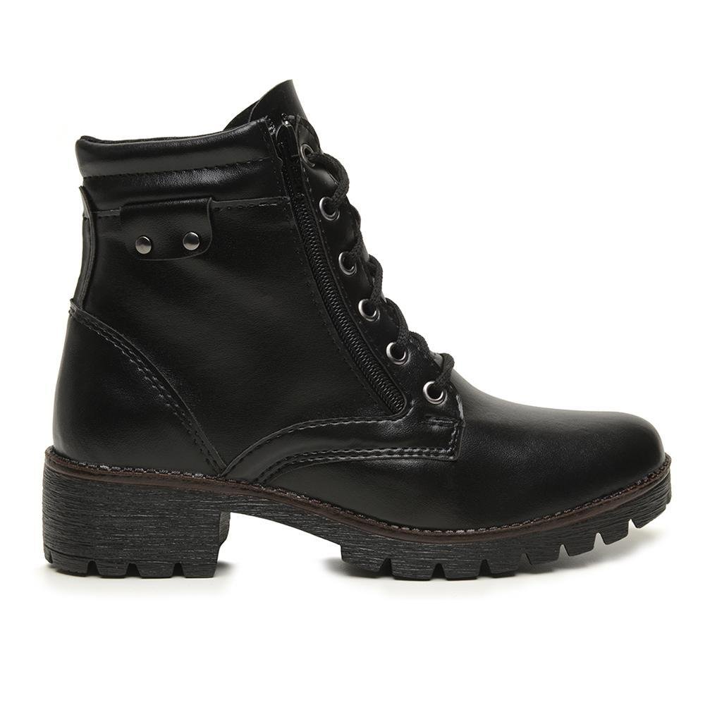 Bota Feminina Coturno BR2 Zíper Lateral Salto Baixo Preto