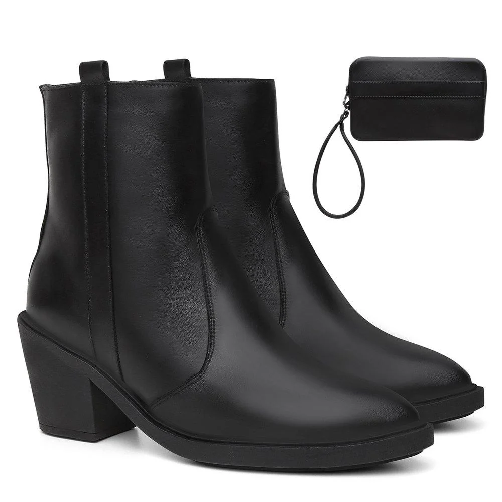 Bota Feminina Couro Casual Bico Fino Zíper + Carteira Kit Preto