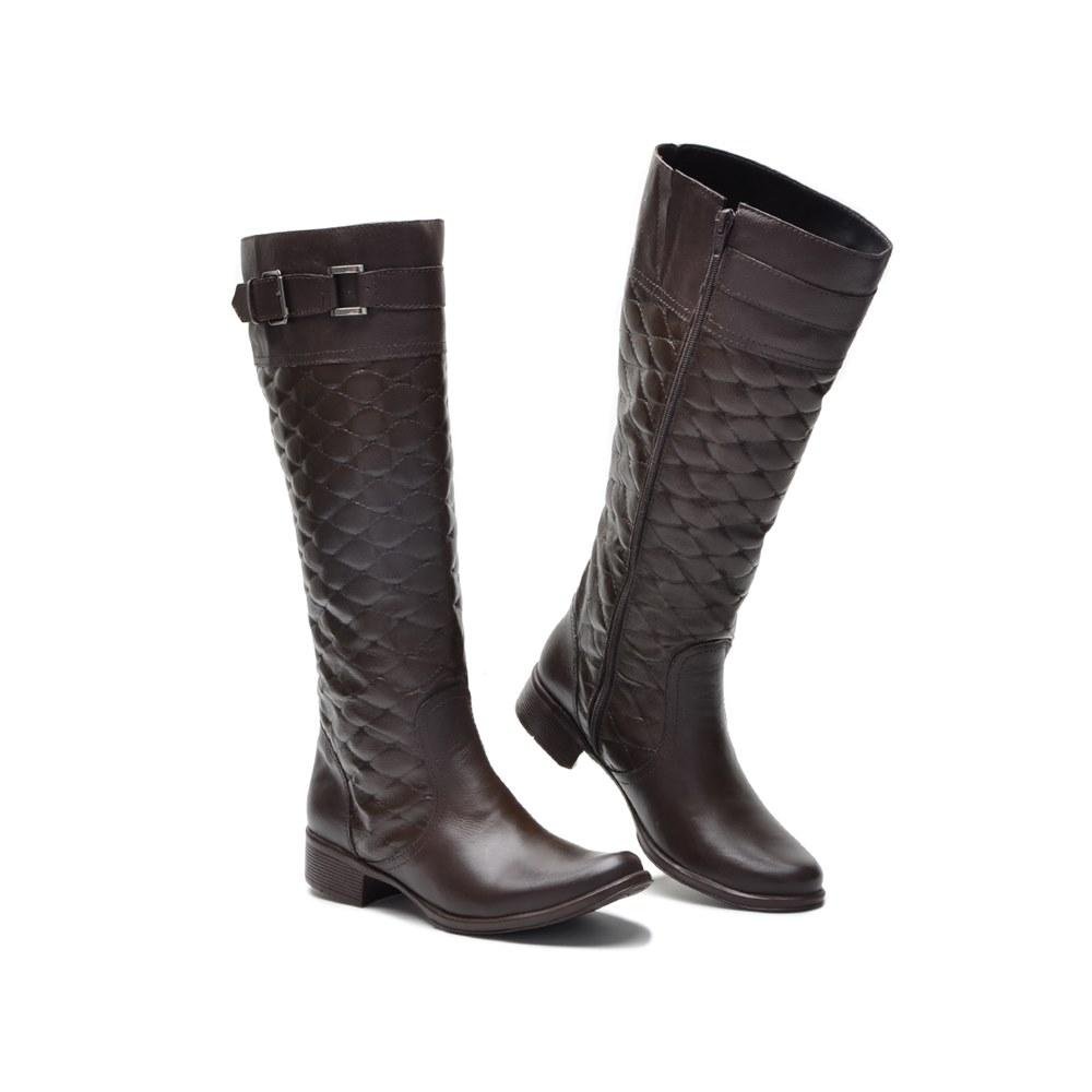 Bota Feminina Montaria Couro Matelassê Cano Alto Moderna Marrom
