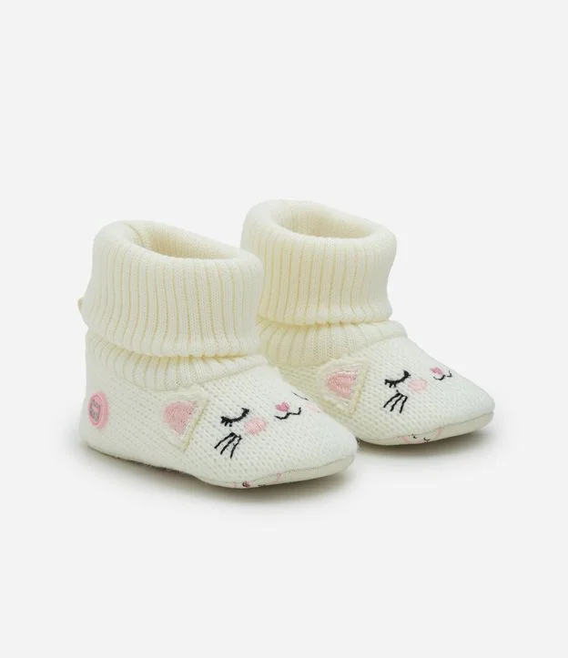 • Bota Infantil em Tricô com Gatinha e Cano Dobrado – Tam 0 a 12 Meses Off White 1