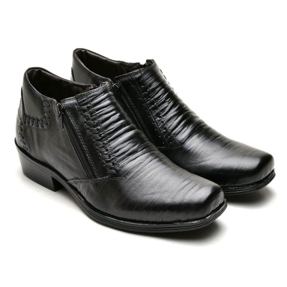 Bota Masculina Couro Cano Curto Zíper Bico Quadrado Conforto Preto