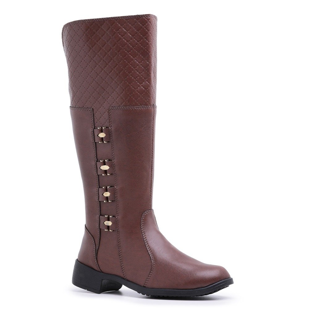 Bota Montaria Com Detalhes Em Metal Moda Chic Salto Quadrado e Sola Macia