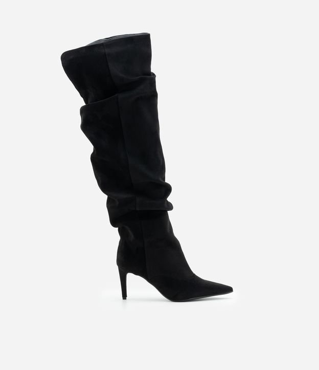 Bota Over The Knee em Suede com Caimento Franzido Preto