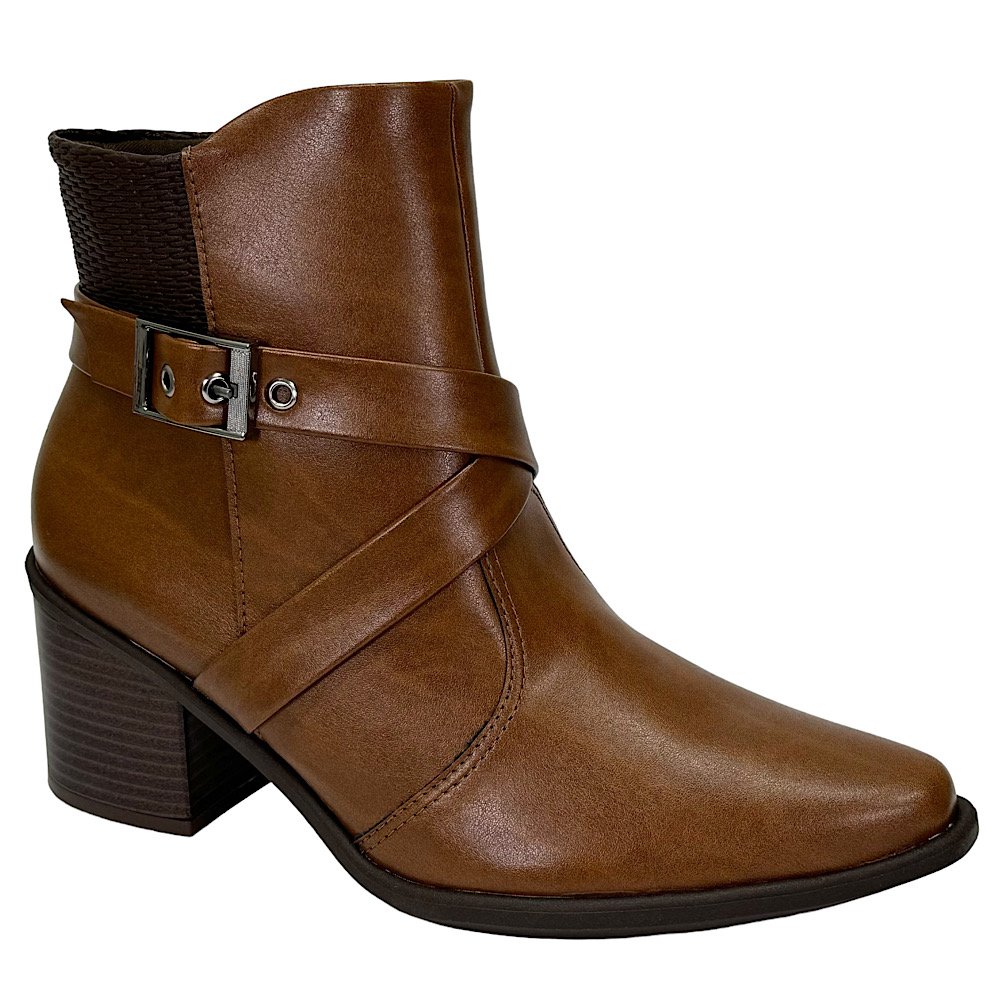 Bota Piccadilly Giordana Bico Fino Salto Bloco 766002 Camel Marrom