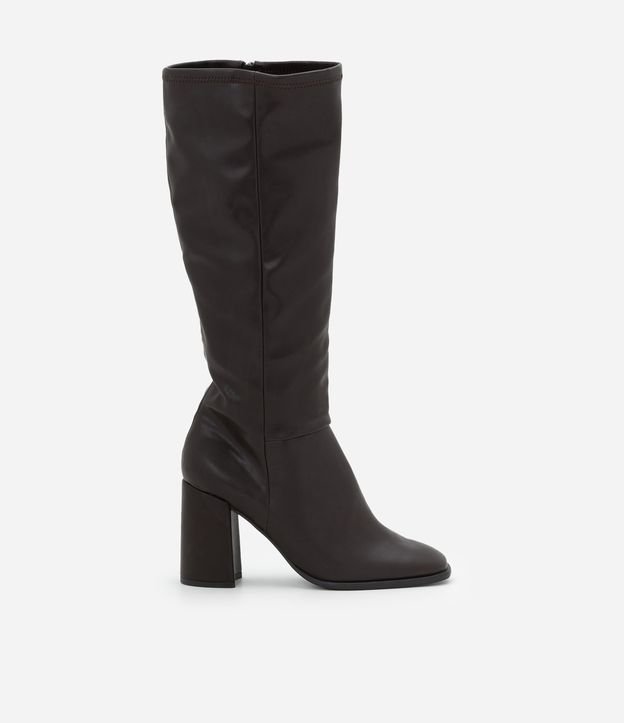 Bota Sock Boot em PU com Bico Quadrado e Salto Bloco Marrom