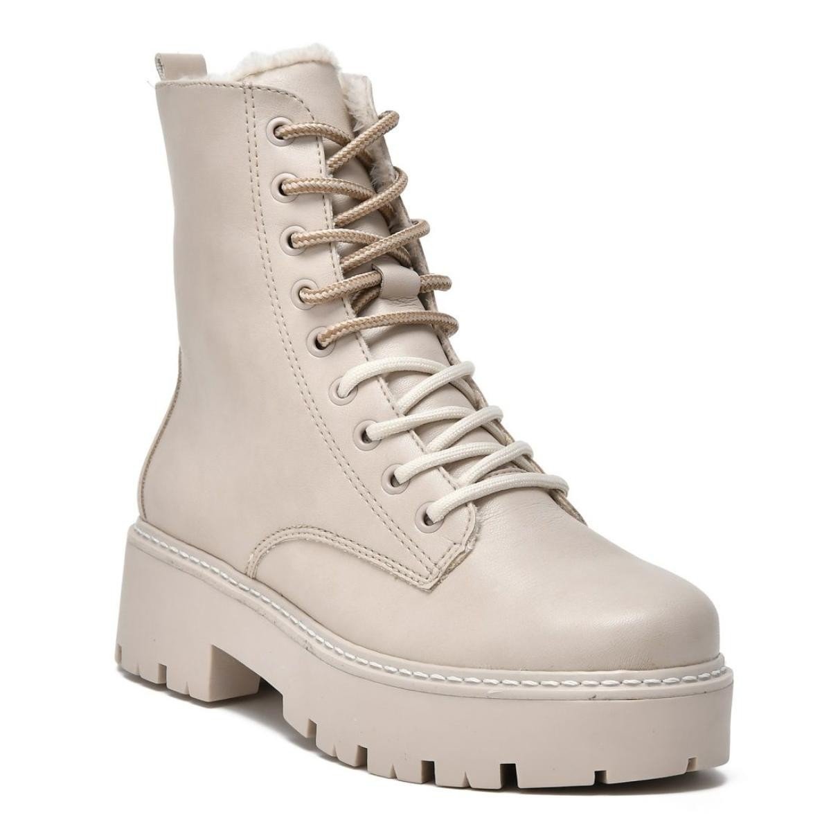 Bota Via Marte 23-2906-01 Coturno Forrado Lã Pelinho Feminino Branco
