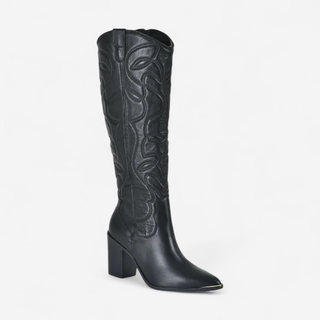 Bota Via Marte Western Feminina Em Couro Preto