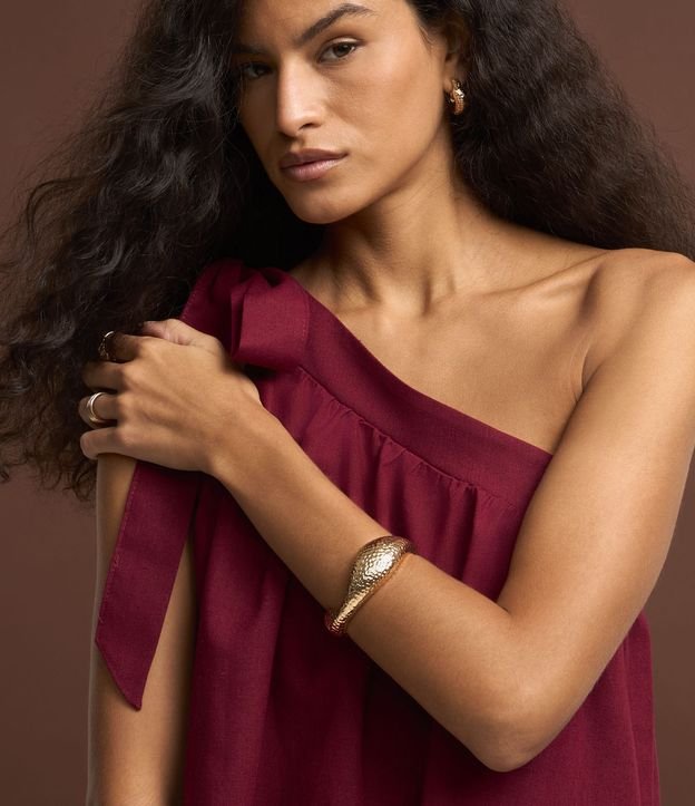Pulseira rígida tipo bracelete com forma orgânica e efeito martelado/amassado.