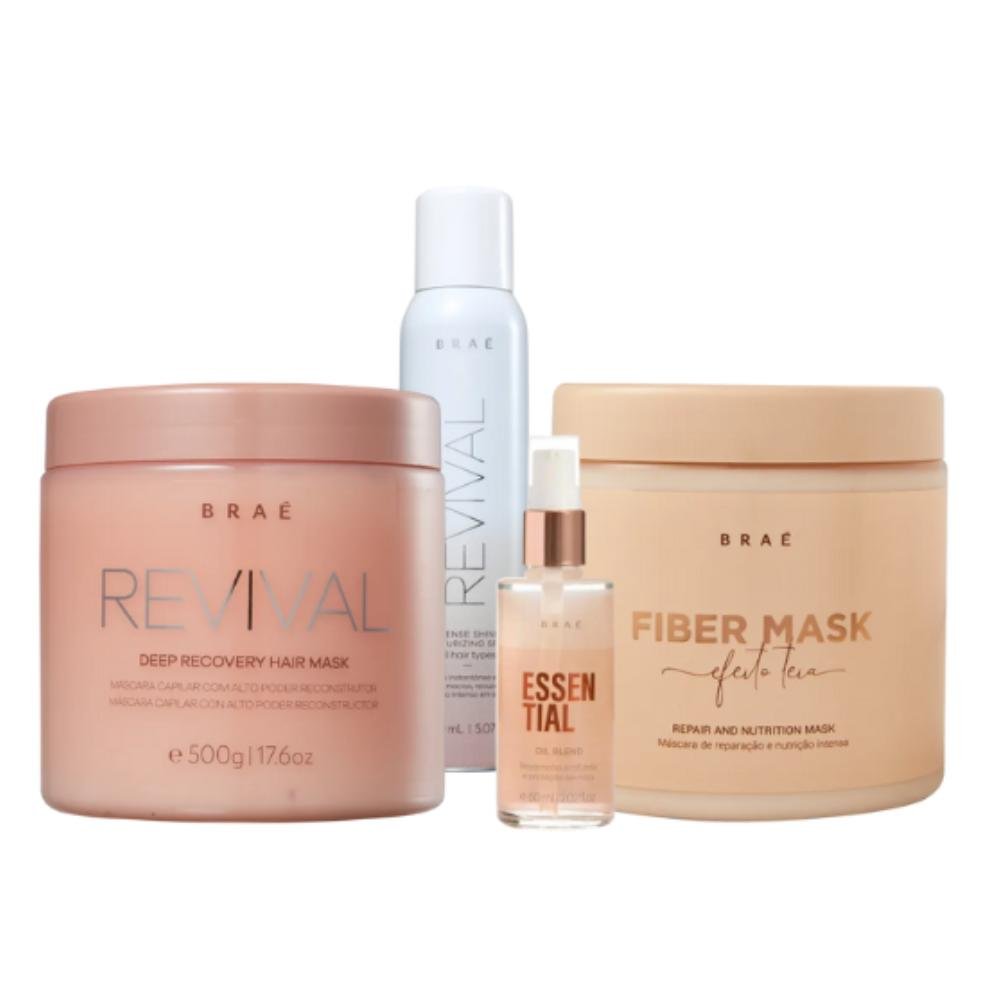 Braé Kit Mascara Revival Fiber Oil Blend Intense Completo Salon (4 Produtos)
