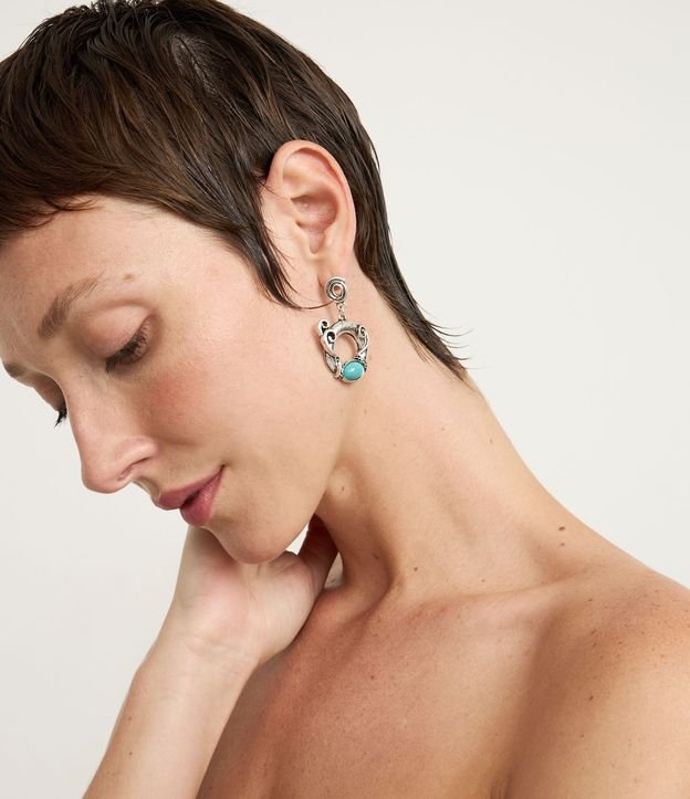 Brinco pequeno confeccionado em metal reciclado com banho prata envelhecida e detalhe arabesco. Possui aplicação de resina verde, trazendo charme artesanal e estilo para compor looks modernos e sofisticados.