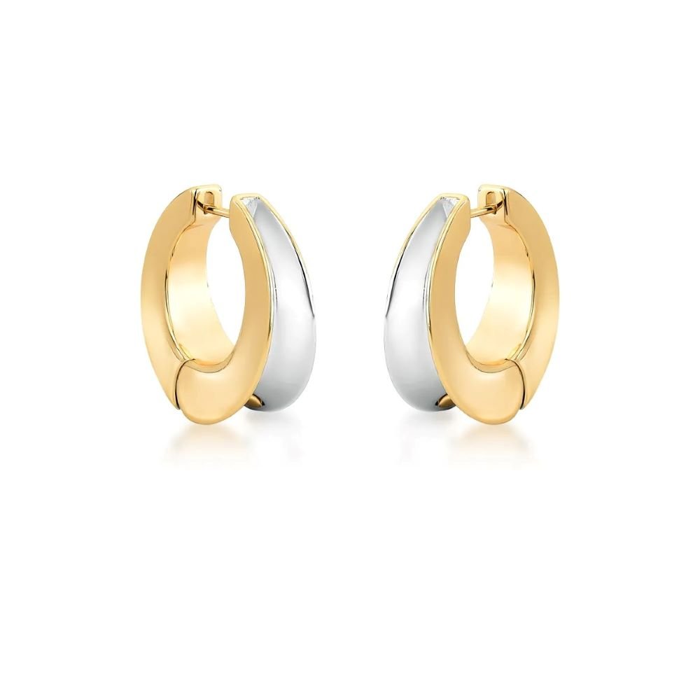 Brinco Argola Articulado Dois Banhos Prata e Dourado Semijoia Ania Store
