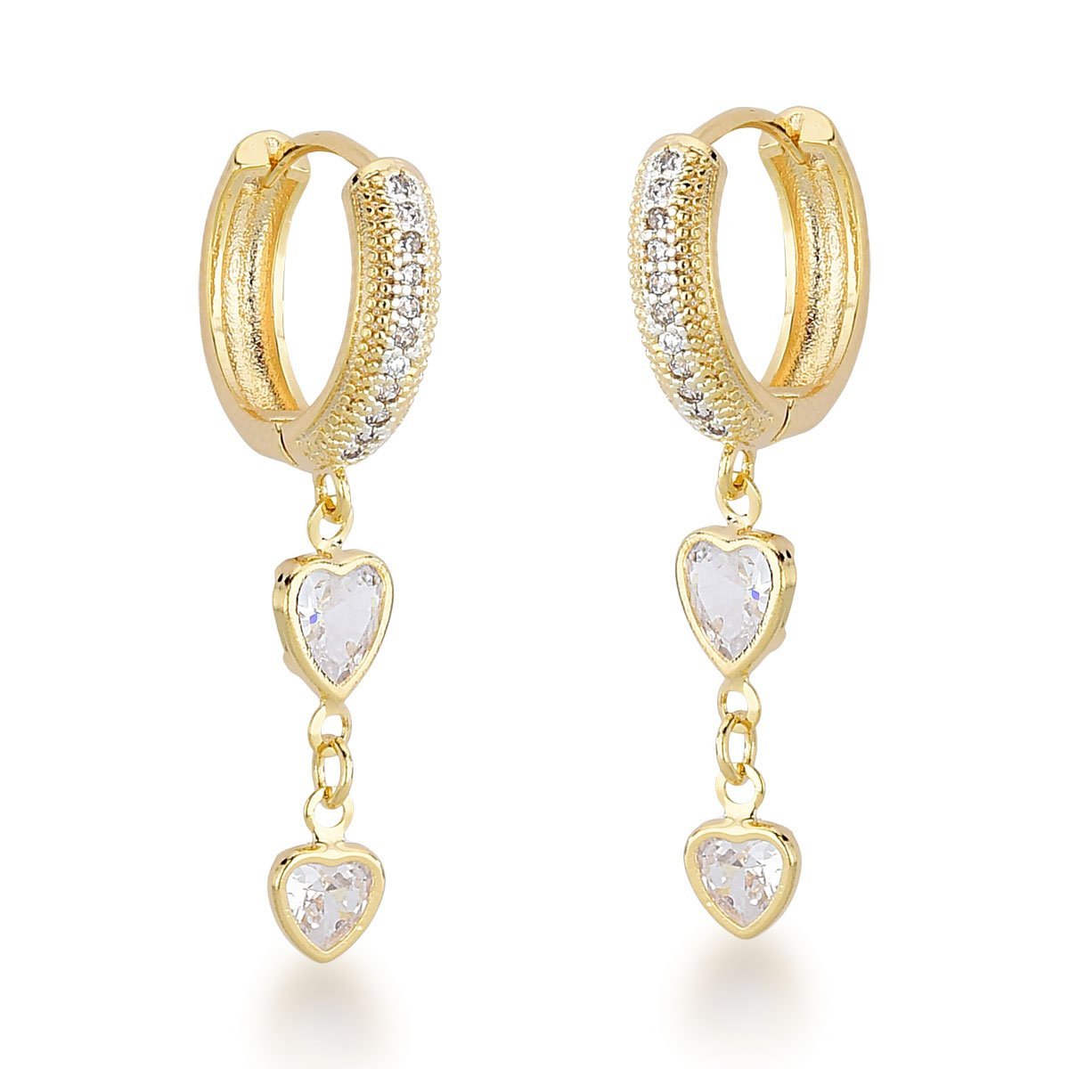 Brinco Argola com Duas Zirconias Penduradas Banhado a Ouro 18k - 1,4cm