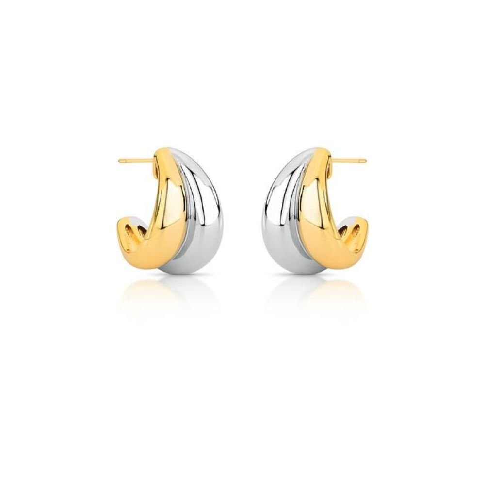 Brinco Argola Dupla Lisa Dois Banhos Ouro 18K e Ródio Semijoia Ania Store