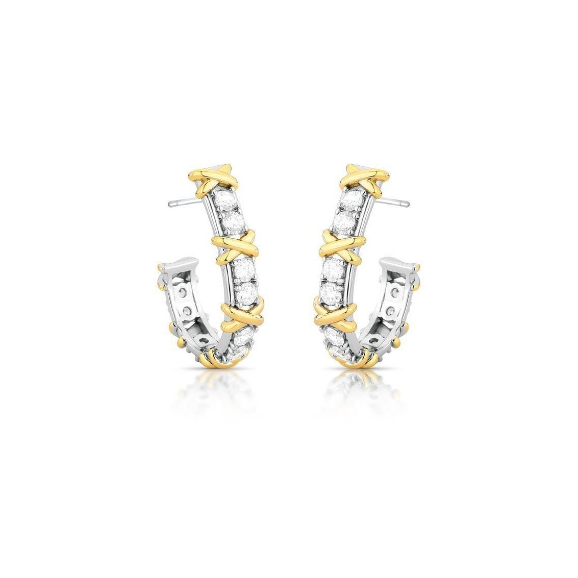 Brinco Argola em Prata e Banhado a Ouro 18K com Detalhes em X e Zircônias Ania Store Prata/Dourado