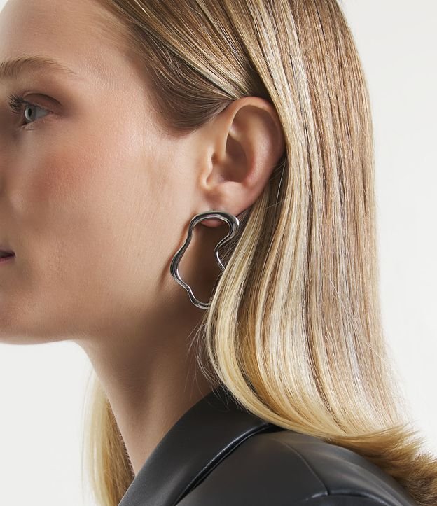 Brinco Argola Formato Orgânico em Metal com Ondulações