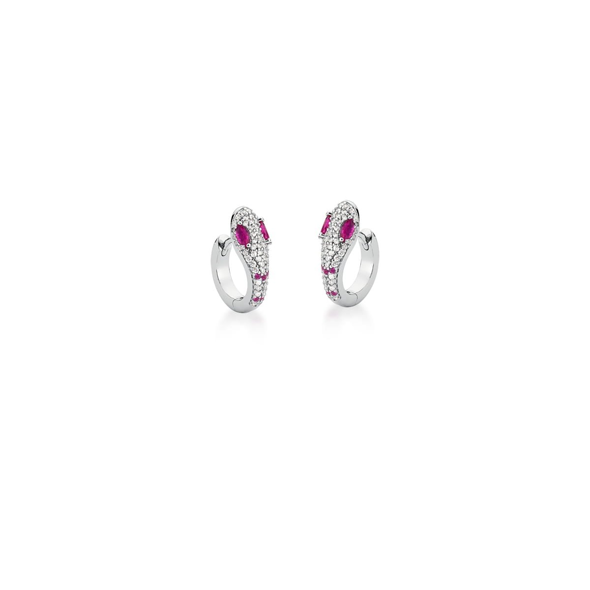 Brinco Argola Serpente banhado em rodio com zirconias e cristais marsala Prata