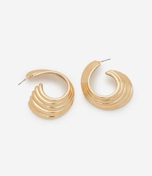 Brinco argola feminina torcida confeccionada com metal reciclado.