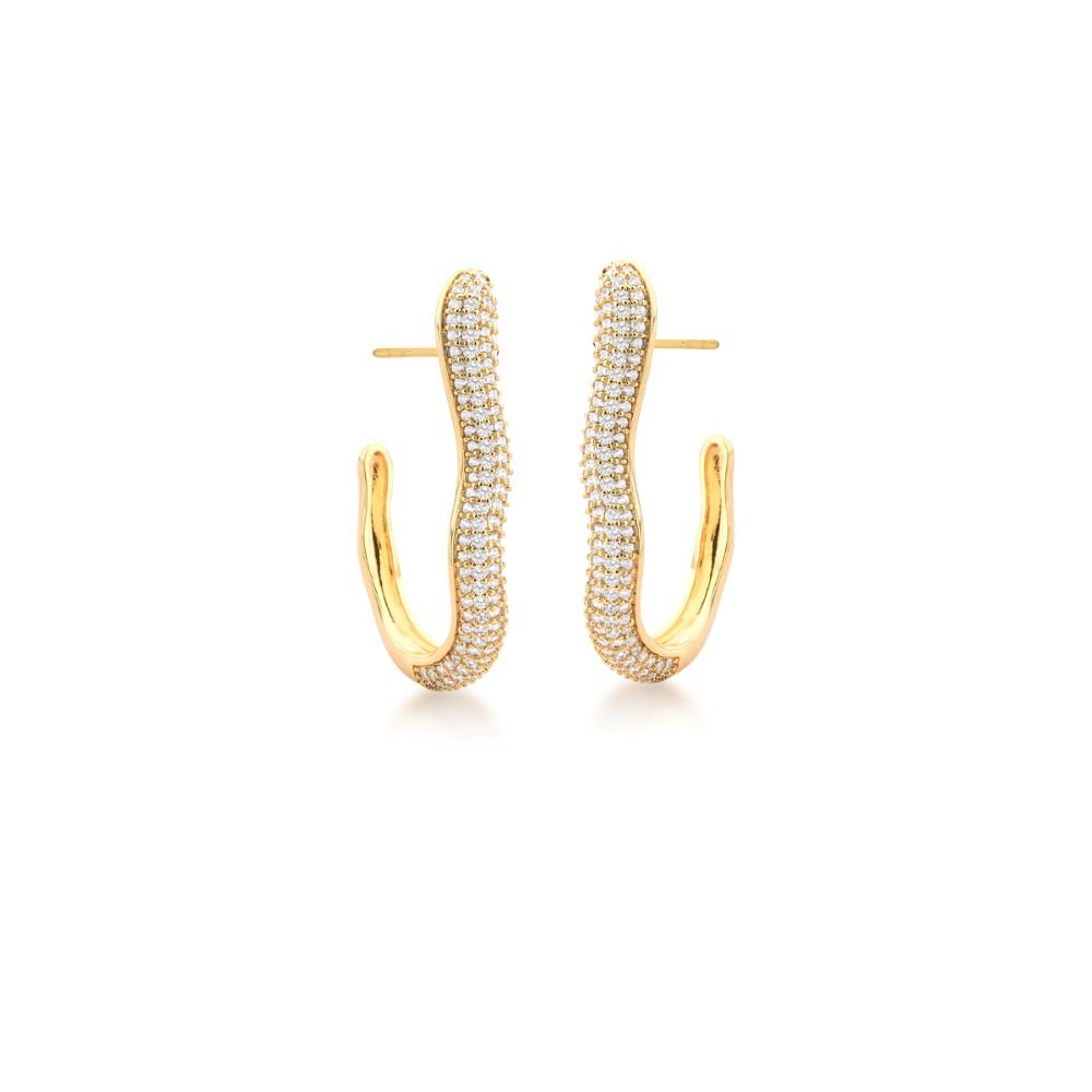 Brinco Argola Vírgula Orgânica M Cravejada Semijoia Banhada a Ouro 18K Ania Store