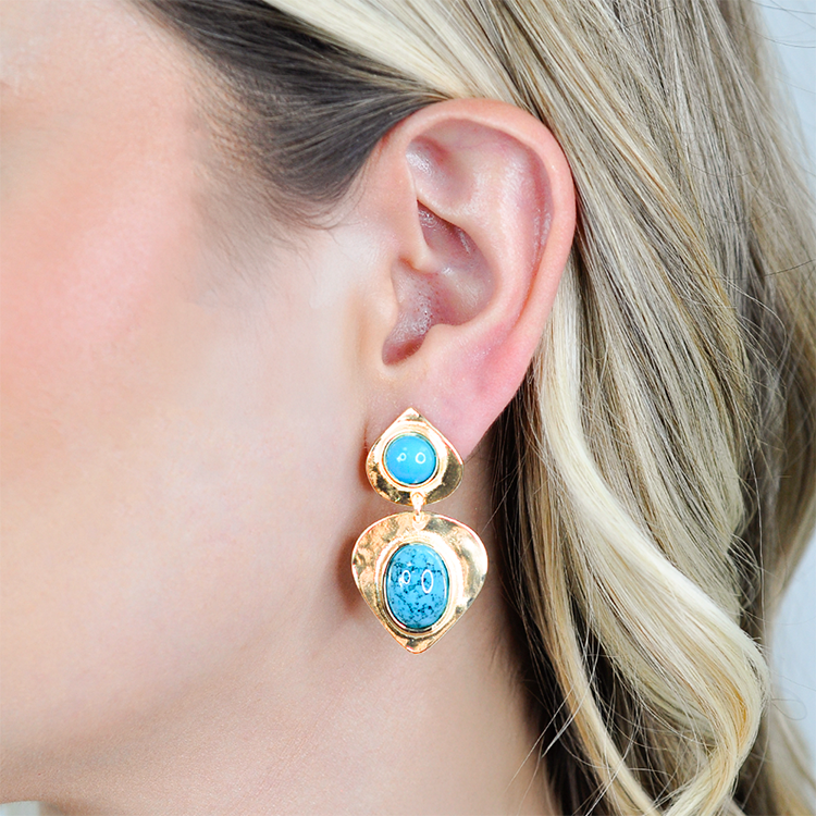 Brinco Bijuteria Pendulo Gota e Oval Dourado Pri Acessorios