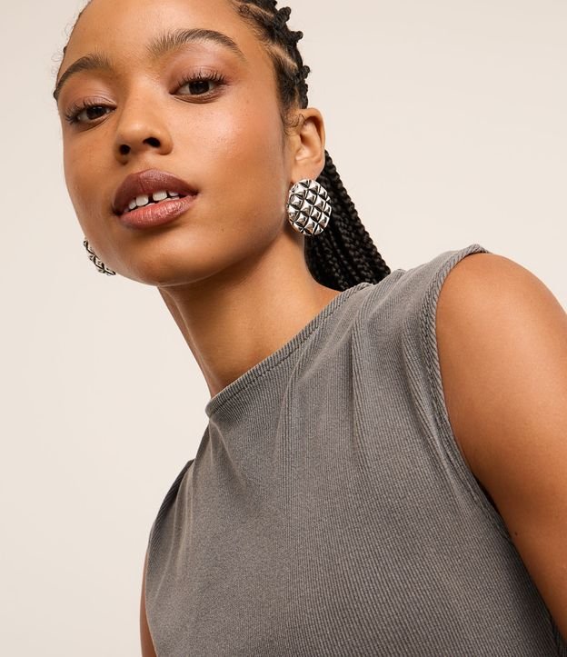 Brinco Botão em Metal com Textura de Serpente e Efeito Envelhecido Prata