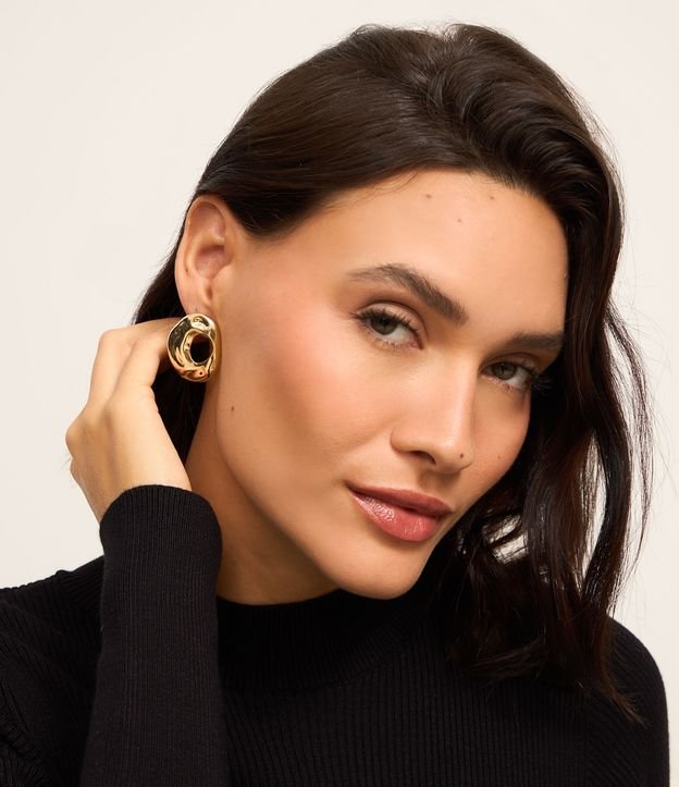 Brinco Botão Médio em Metal Vazado