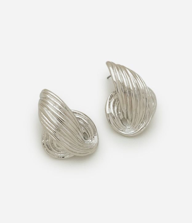 Par de brincos feminino confeccionado em metal reciclado. Possui modelo botão torcido com linhas metálicas alongadas.