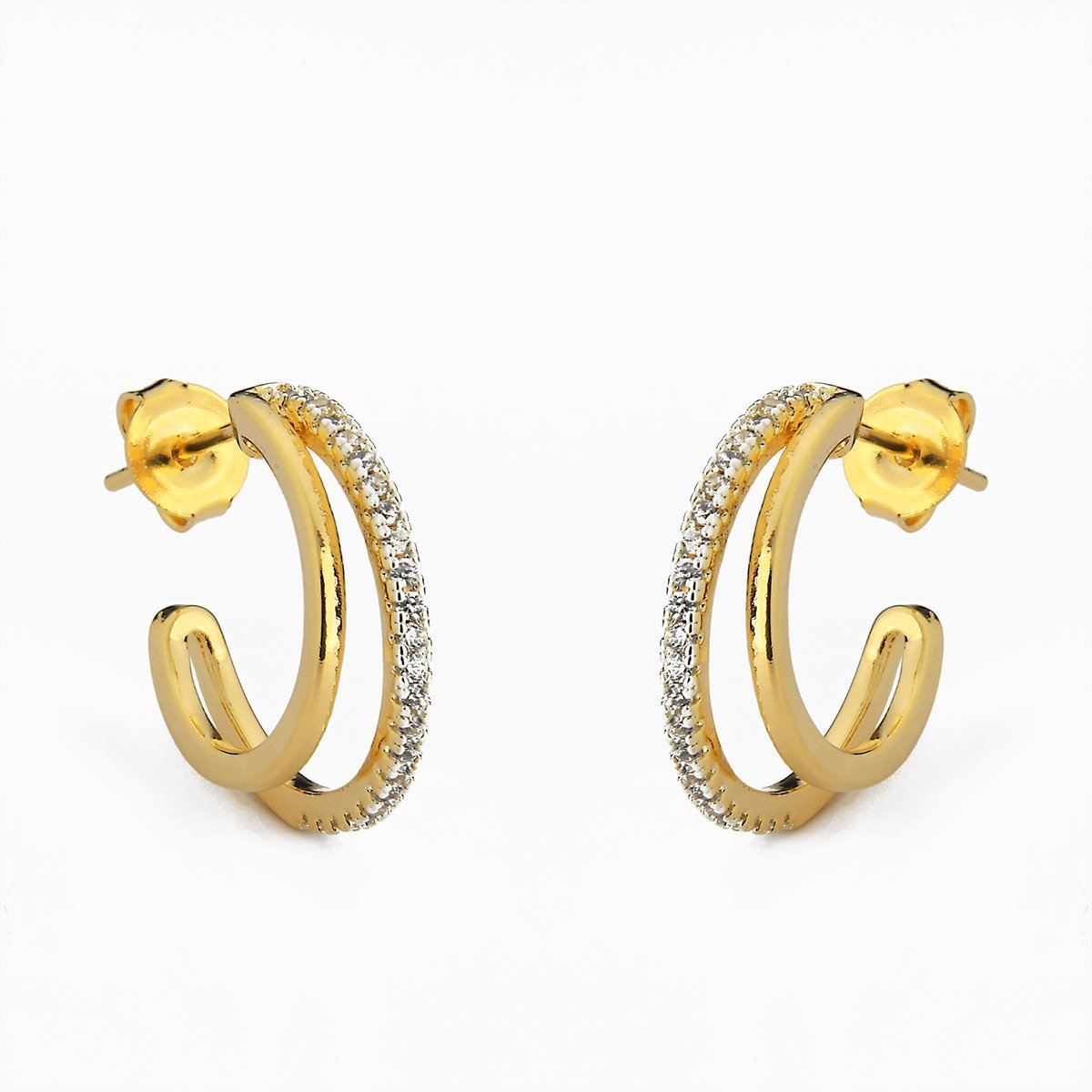 Brinco de argola de 2 fios cravejado com zircônias Dourado