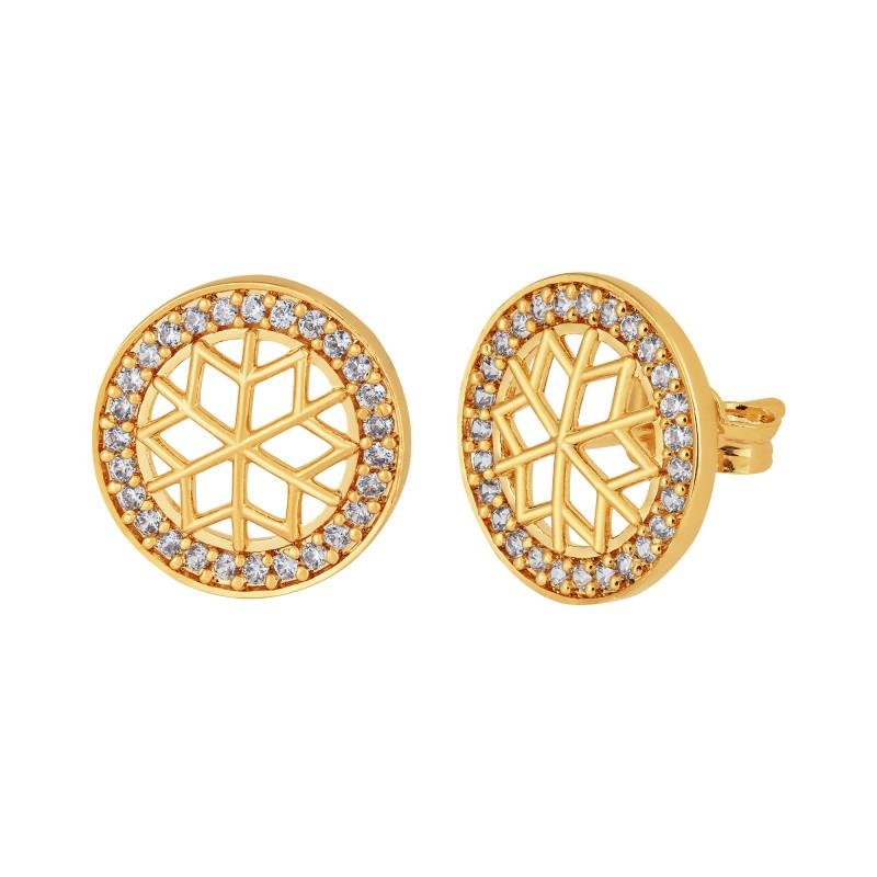 Brinco de Prata Mandala com Zircônias Brancas Revestida com ouro 18k