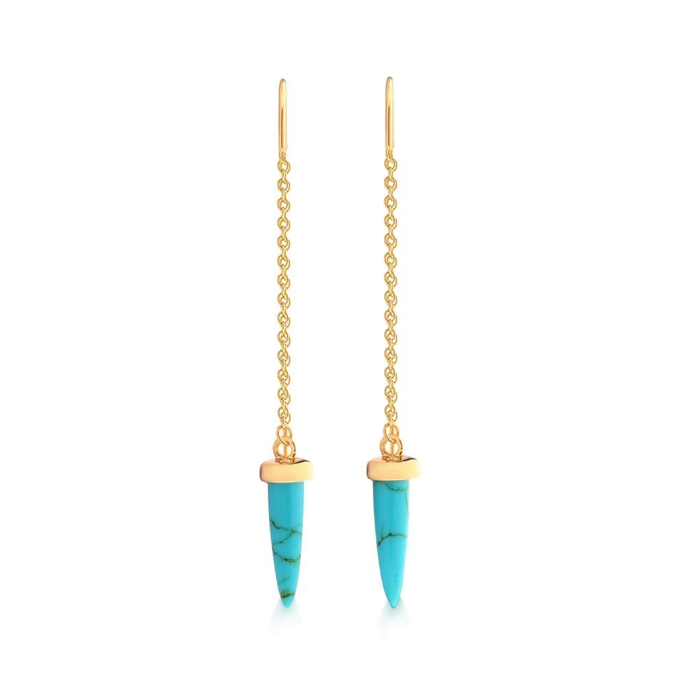 Brinco Dente de Sabre com Cristal Turquesa em Prata 925 com Banho de Ouro Amarelo 18k Dourado
