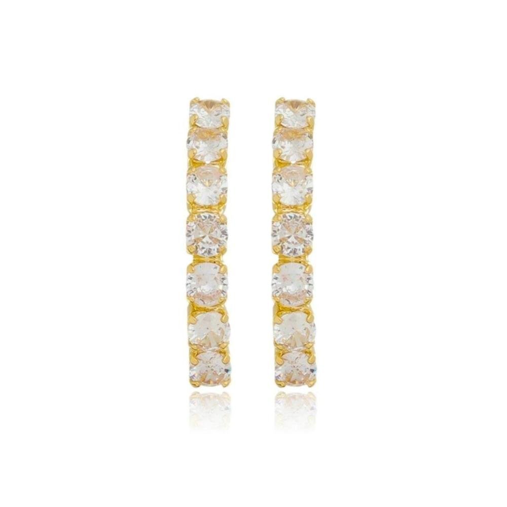 Brinco Ear Hook Com Zircônia Cristal Banhado A Ouro 18K