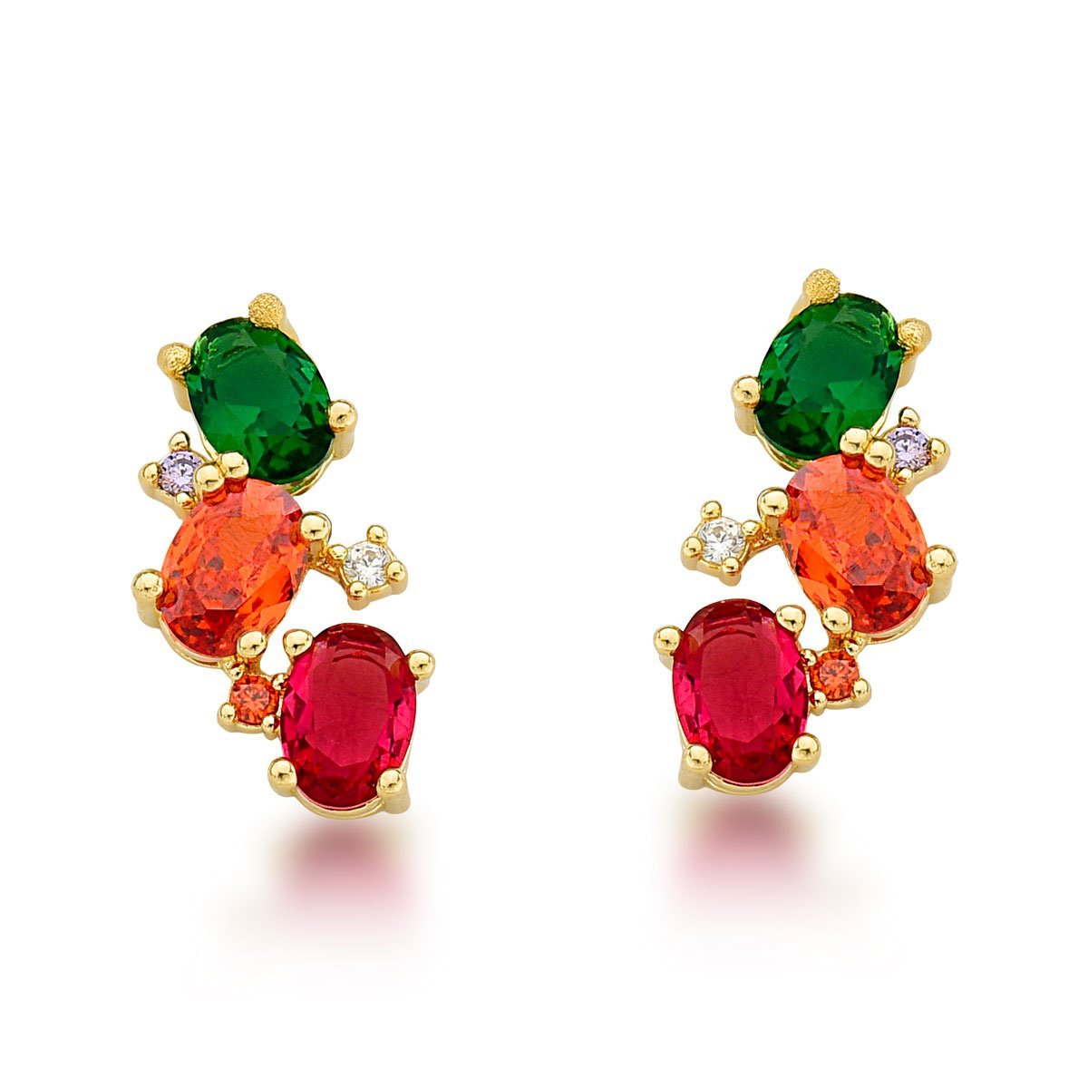 Brinco Earcuff com Zircônias Ovais em Cores Banhados a Ouro 18k - Azul