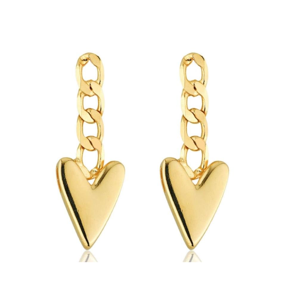 Brinco Elos com Pingente de Coração Banhado a Ouro 18k Dourado