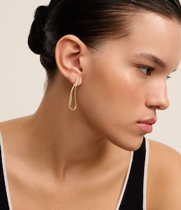 • Brinco Fio com Corrente Rabo de Rato e Detalhe de Strass Dourado 3
