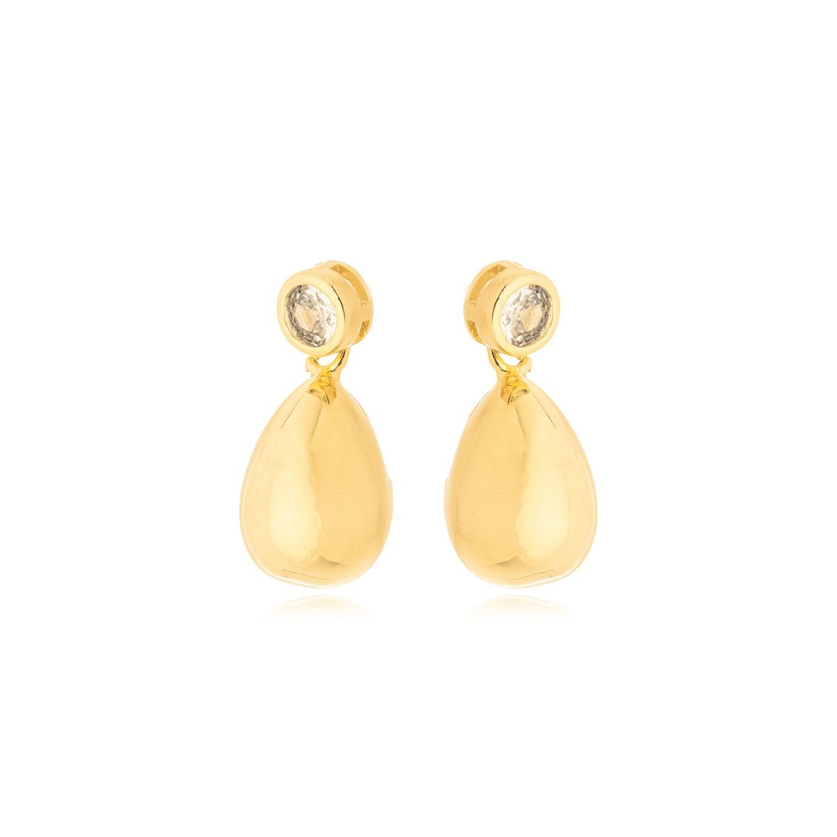 Brinco Gota com Ponto de Luz Banhado a Ouro 18k Dourado