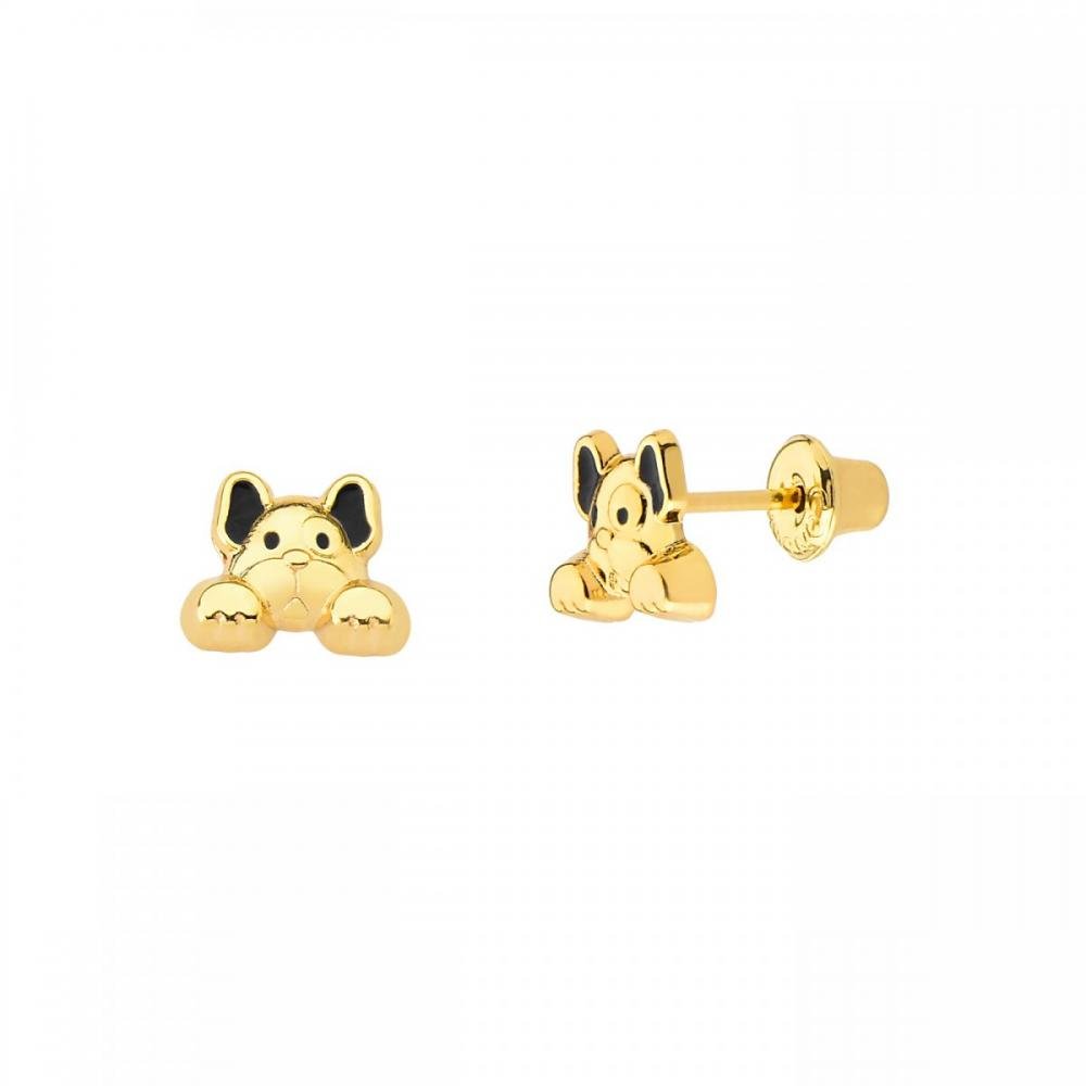 Brinco Infantil de Prata com banho Dourado Cachorrinho Dourado