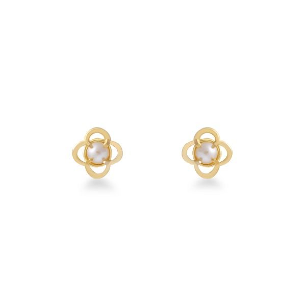 Brinco Infantil Trevo Em Ouro 18k Com Pérola